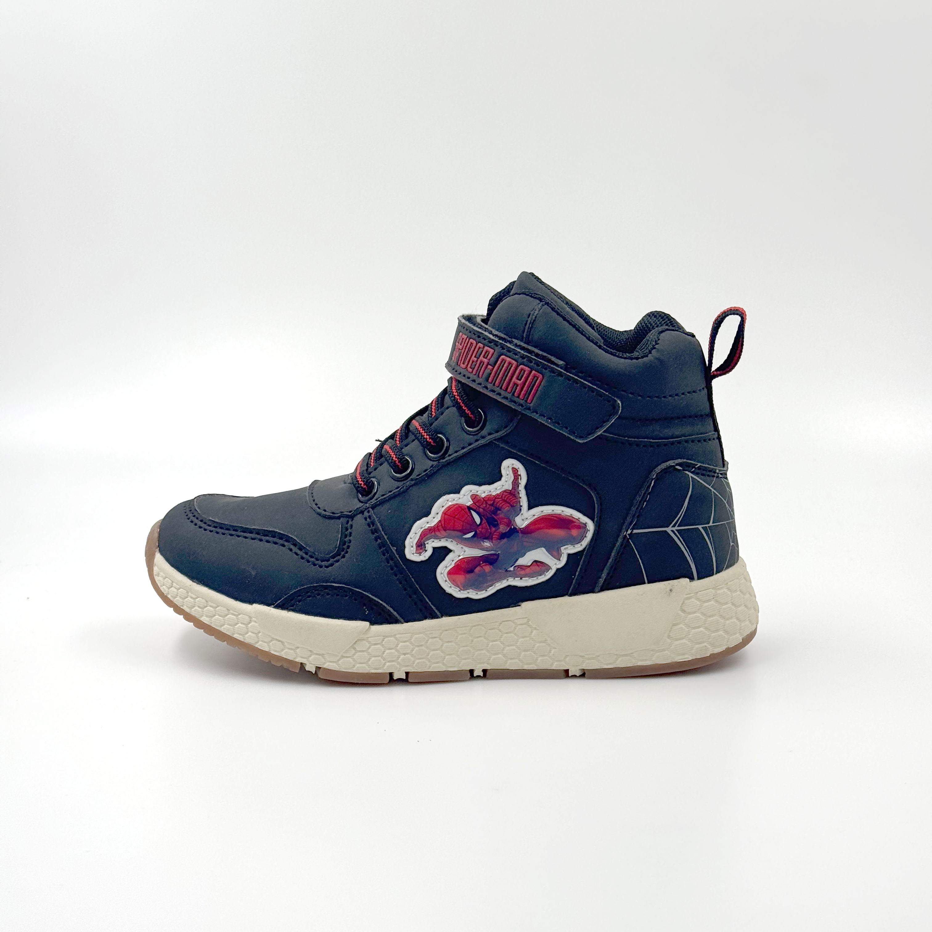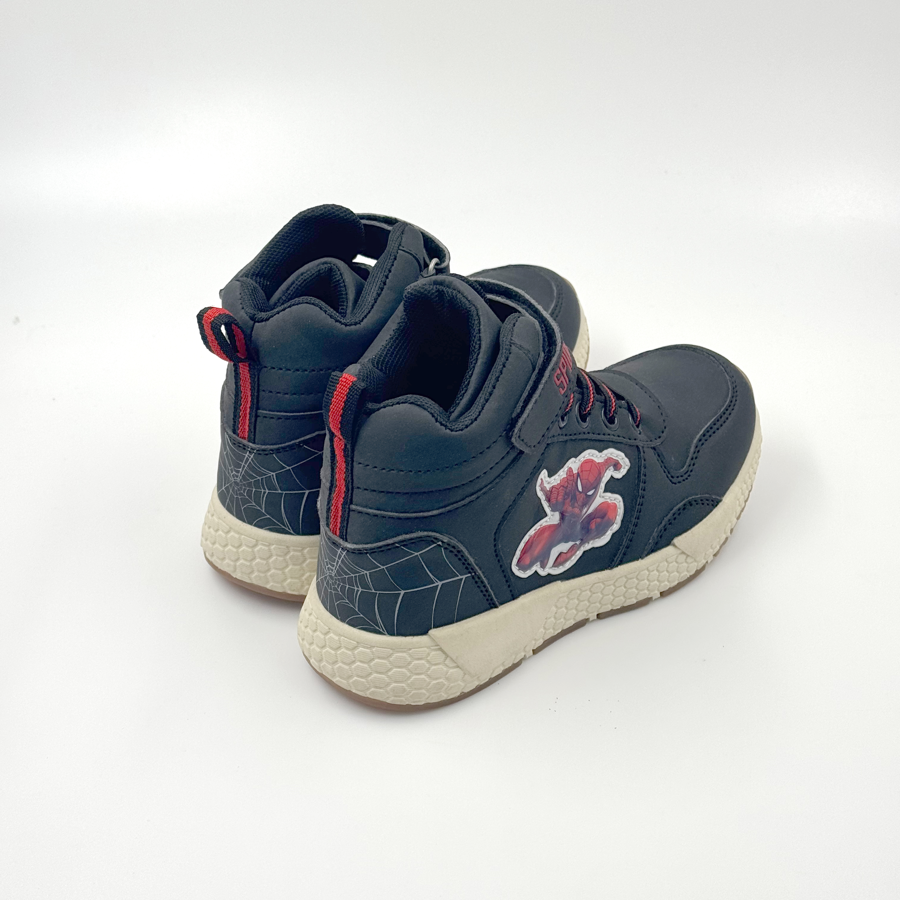 HIGH CUT SPIDERMAN SHOES WITH GOOD WORKERMANSHIP , SPIDERMAN CHARACTER PATCH ,SUPER COMFORTORT FEELING