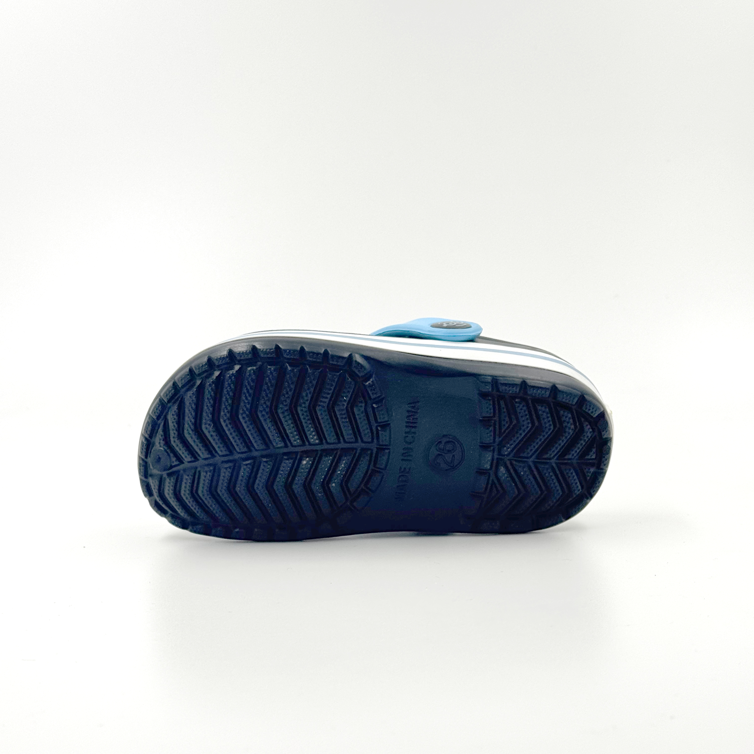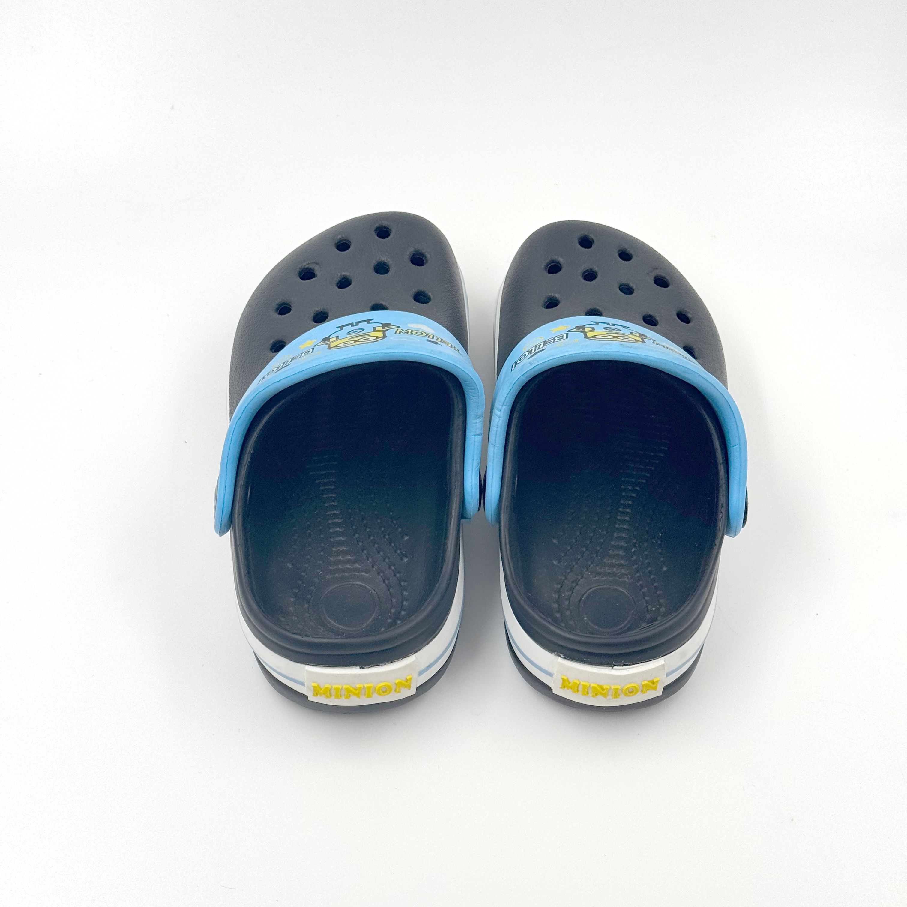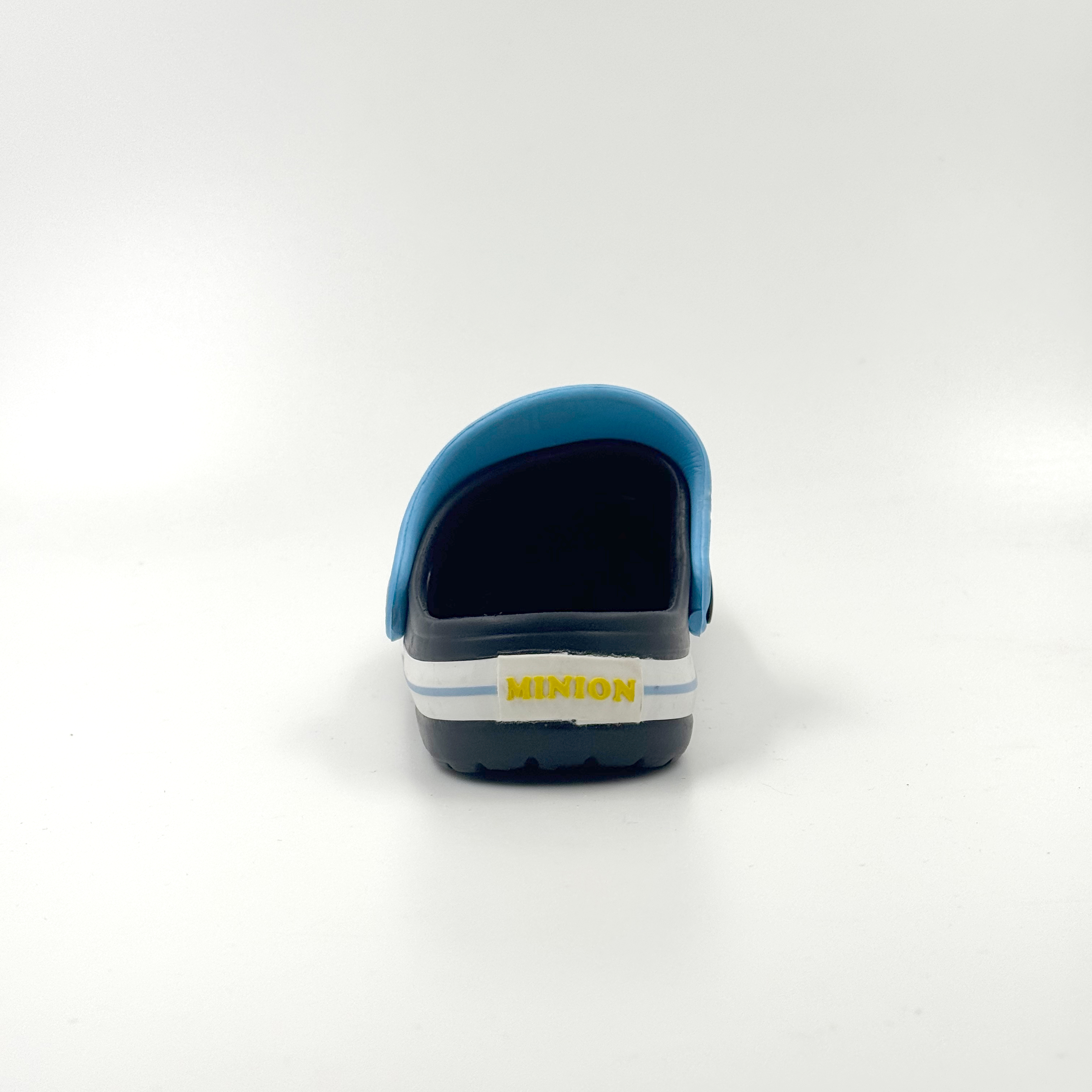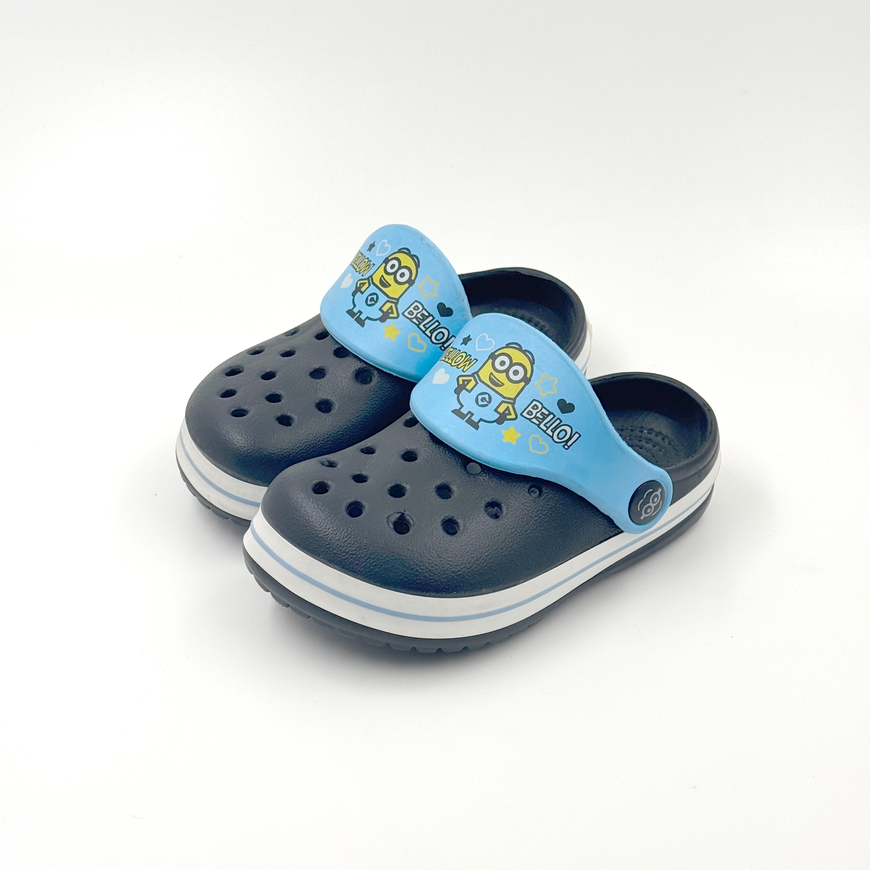 Dark blue and sky blue color-blocked children's clogs, Minions-themed clogs